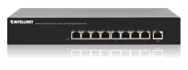 Intellinet 560764 Switch PoE/PoE+ 8x RJ45 10/100Mbps, ENDSPAN, metalowa obudowa